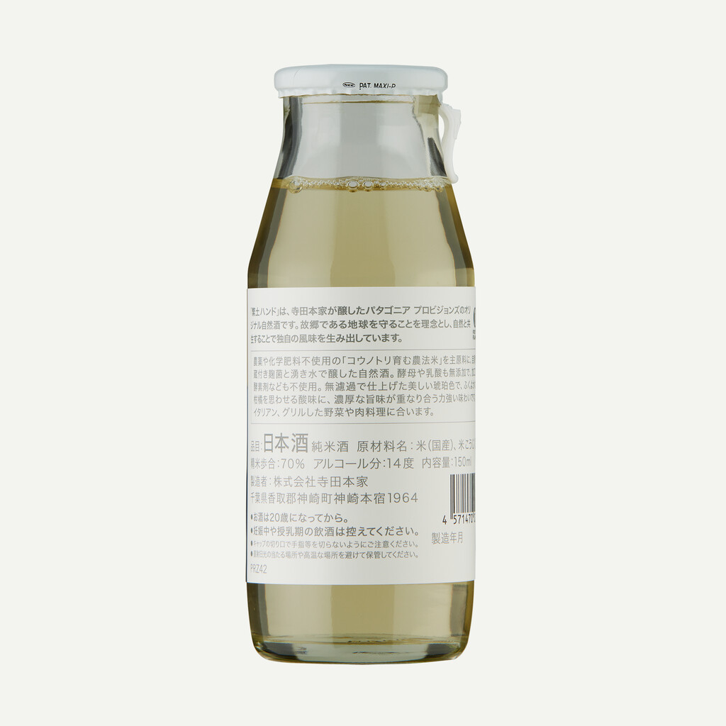 Patagonia Provisions 出品的原味天然清酒,由創立於 1673 年的家族企業寺田本家釀造。 這酒未經過濾釀造,呈現美麗的琥珀色。 繁土於初春釀造,經過陳釀,達到了柔和甜味與柑橘般酸度的平衡。 如何享用 這款清酒口感醇厚,非常適合暖身飲用,尤其適合冬季享用。它也與中餐、義大利餐、烤蔬菜和肉類搭配相得益彰。 飲用熱清酒時需要注意的事項 ① 打開瓶蓋:加熱時保持瓶蓋打開。 ② 不要直接加熱:不要直接加熱瓶子,而是將其放入裝有水的鍋中,隔水加熱。 ③ 隔水加熱:不要將瓶子直接放入沸水中,而是隔水緩慢加熱。 ④ 小火加熱:避免高溫加熱,以小火慢慢加熱。 ⑤ 保持適宜溫度:水溫維持在80℃以下,切勿煮沸。沸水可能會導致瓶子破裂,也會影響清酒的風味。 酒精含量 14度 如何保存 避免陽光直射和高溫,並存放在陰涼乾燥處。 法律禁止未成年飲酒。請回收空瓶。 原產地 日本製造 重量 容量:150毫升 x 6瓶