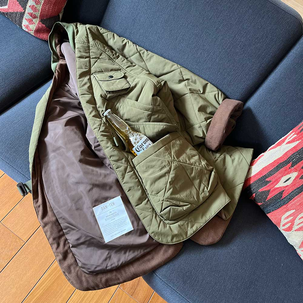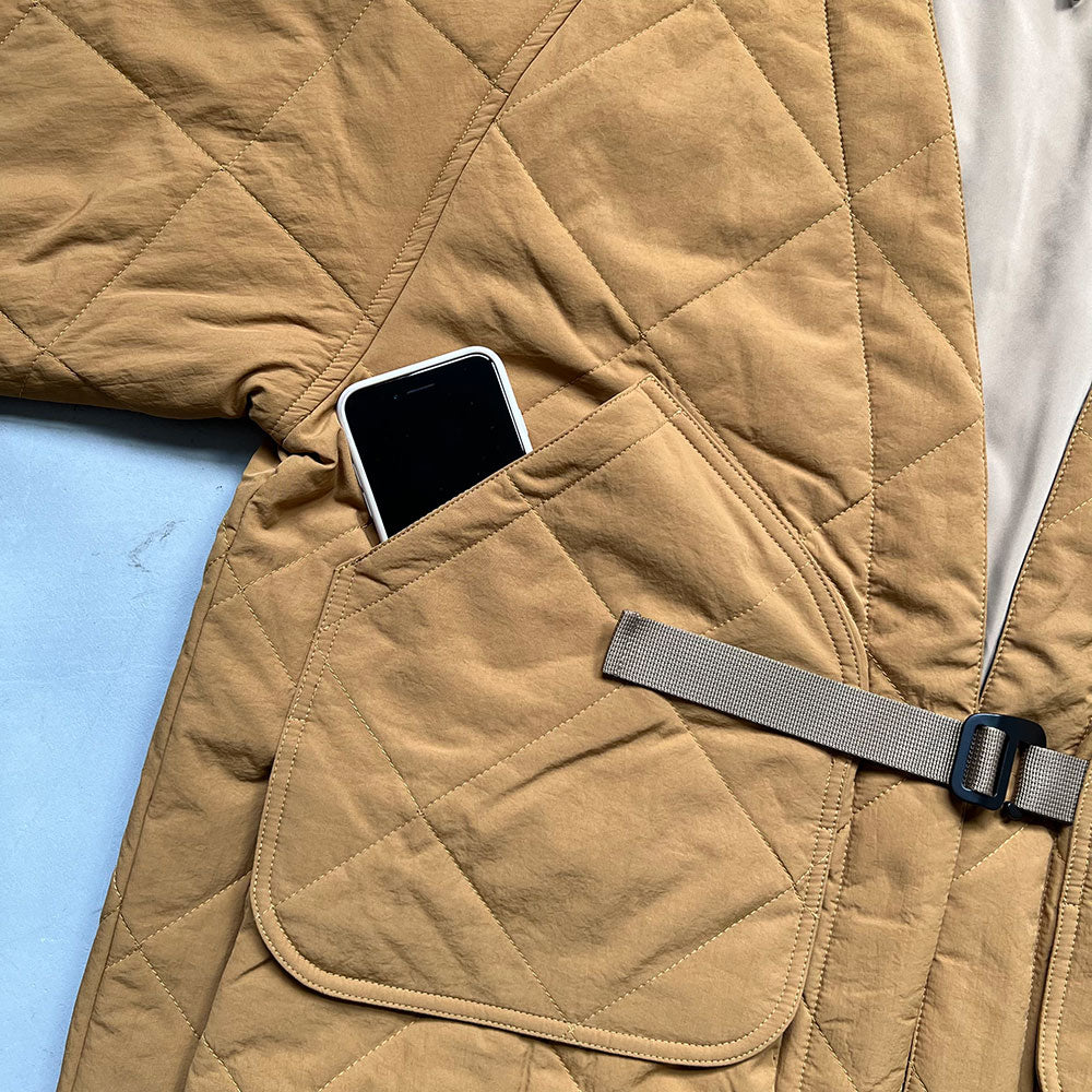 【DAN-TEN 暖纏ダンテン】以輕盈舒適的穿著感與可收納設計為特色,靈感源自傳統「半纏*(はんてん / hanten)」,以現代手法重塑經典。寬鬆剪裁增加舒適感,同時適合不同身高身型寄著,男女兼用,滿足多樣生活風格。使用輕盈COM-FLY,無論室內外皆展現低調奢暖風格。 *「半纏(はんてん / hanten)」是日本的一種傳統短外套,起源於江戶時代。最初是庶民在冬天穿的保暖衣物,外形像短版棉袍,長度約到臀部,內裡填充棉花,外層多為厚實布料。 標準尺寸📏 L:胸圍96~112cm 適用身高:165~185cm 女model 163cm 男model 173cm / 180cm